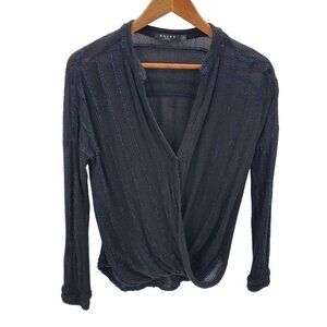 Maven West Womens Black Wrap Blouse Top Size S Long Sleeve V-Neck Casual Career