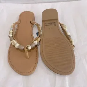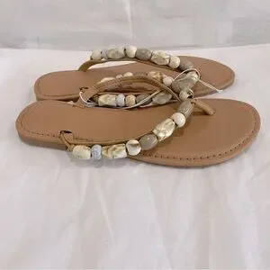 Woman's Cindy Beaded Flip Flop Sandals - Universal Thread Tan Size 6.5