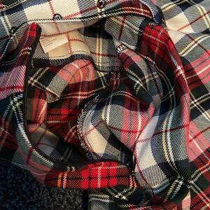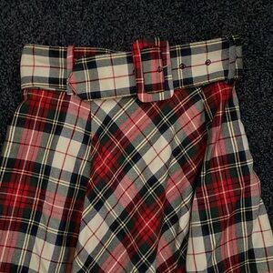 Red, white, and black midi skirt is the holiday skirt to wear. On the side there is a hidden zipper and comes with a belt