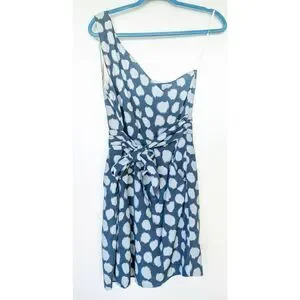Theory Vivien Ikat Blue & White Spotted Polka Dot One Shoulder Mini Dress Size 8