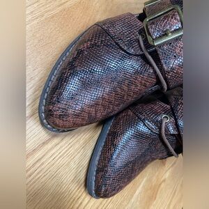Coconuts by Matisse brown snakeskin bootie lace up/buckles/cut out/heel NEW 7M