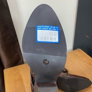 This is a really cute and unique pair of heeled booties! Lace up ties with buckles in the front and a convenient zipper in the back! Low chunky heel. New, never worn. No box. Closet kept. 🚭