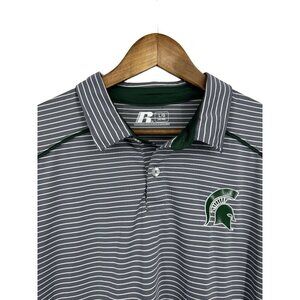 Russell Golf Polo Shirt Gray White Stripe Spartan MSU Logo Men's Size L