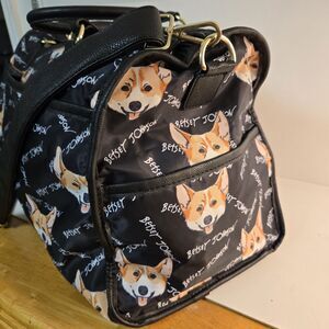 Betsy Johnson Black Weekender Duffle Corgi Print Bag w Adjustable Shoulder Strap