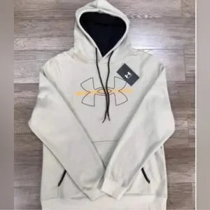 Mens Under Armour Hoodie Sweatshirt 2XL Cream & Gold W/Front Pocket