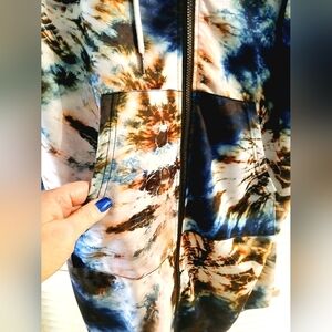 Cute jacket that looks great with nearly everything. Tie dyed fabric, hoodie with drawstring adjustment.