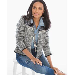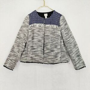 Chico’s Long Sleeve Pieced Detail Jacket Black/White/Blue Casual Blazer P3378