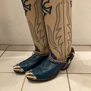 Vtg JUSTIN cowboy western extra tall metal toe tips harness womens boots sz 5 B