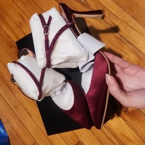 Badgley Mischka Red Heels with Sparkly Straps and Gold Soles