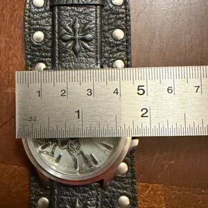 Affliction Avengers Watch Black Leather Studs Strap Winged Skull Tattoo Art Men