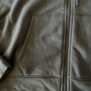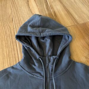 Keywords: All in Motion, hoodie, gray, unisex, full zip, adjustable hood, fall fashion, casual wear, ribbed fabric, machine washable, pre-owned, comfortable, versatile, medium size, long sleeve.