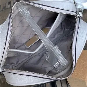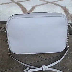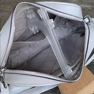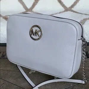 NWT authentic Jet Set East West Crossgrain Leather Crossbody Colored Michael Kors Logo On front Zip Top Closure Silver Toned Hardware Custom MK Fabric Lining 2 Slip-in Pockets 9.5" (L) X 6.5"(H) X 2"(D) Strap: 20"-23"