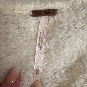 Free People Off White Oversized Knit V-Neck Tunic Sweater Womens Medium