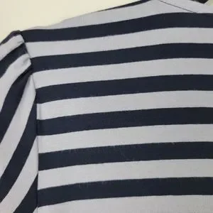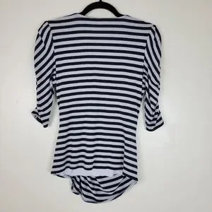 Black and gray striped v-neck Assymetrical ruched front and sleeves blouse.
