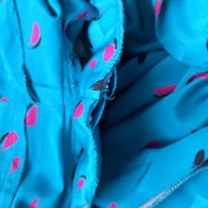 This dress is totally rad and absolutely fabulous! Perfect for a retro 1980s or 1990s look. Flowy cut with front button closure, This dress can be worn casually or dressed up with the right shoes and jewelry. amazing teal blue green color with hot pink and black accents with shadow square confetti print make this piece one of a kind.