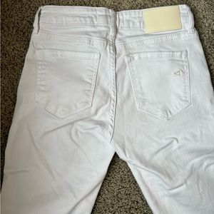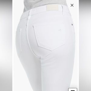 Welcome white-jeans season in this stretch-kissed pair cut from denim enriched with soft, sustainable Tencel® lyocell and finished with a frayed hem.
