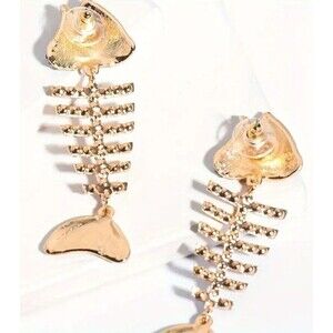 Rainbow Rhinestone Fish Bones Earrings 2.5" Women Teens