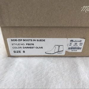 Madewell Janice size-zip boots in suede. Color: Dark Olive. In great condition, only worn a few times and they’ve been stored in the box. Style # F5076.