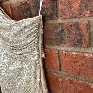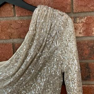 SALE! Champagne Sequin One Shoulder Fitted Midi Gown Formal Dress
