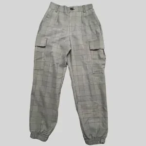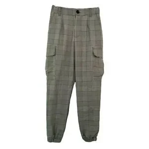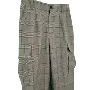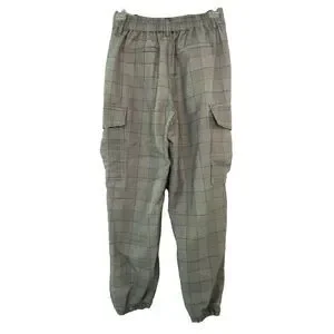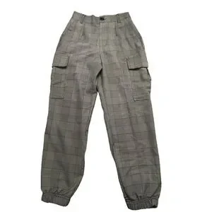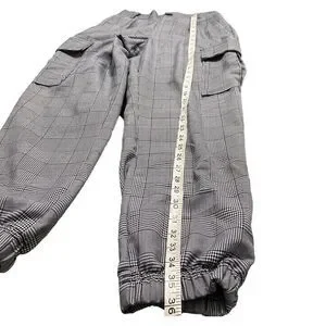 Forever 21 Women's Plaid Cargo Joggers Black and White Trousers Small