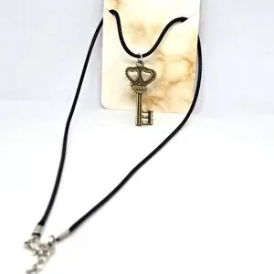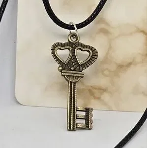 BRONZE KEY PENDANT NECKLACE BRAND NEW CUSTOM MADE LEATHER CHORD CHAIN 19" LONG