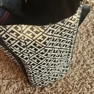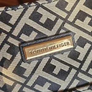 Tommy Hilfiger black and tan shoulder bag with Tommy's tan cross "T" design