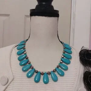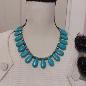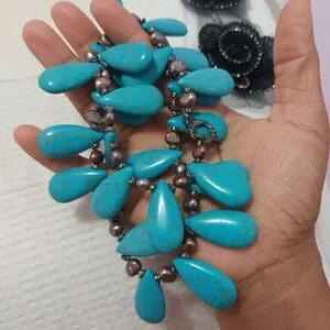 SOLD Teardrop Howlite Turquoise Purple Freshwater Pearl Fringed Collar Necklace