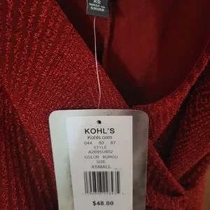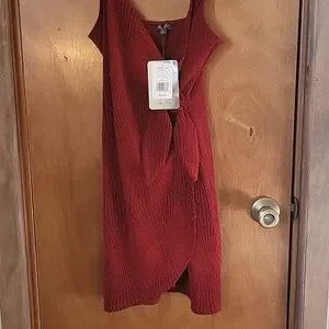 Elevate your evening look with this stunning red (tag says burgundy, it is a deep red) faux wrap dress. Perfect for a Christmas dance, Valentine's Day date, cocktail party or special event. The textured fabric catches the light, offering subtle sparkle and the wrap style is a flattering silhouette. Pit to pit laying flat 15", shoulder to hem laying flat 33"
