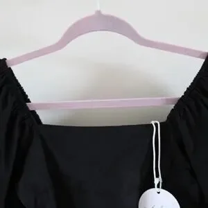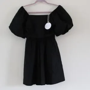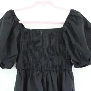 NWT Petal and Pup Linen Blend Square Neck Puff Short Sleeve Mini Dress Black S