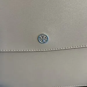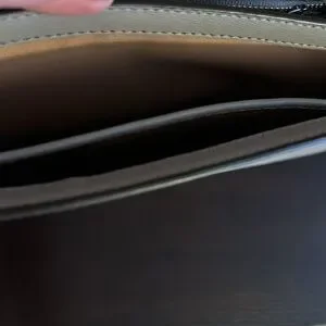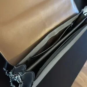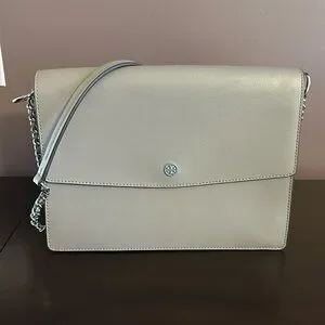Gray chain strap leather shoulder bag, 2 large sections, and open pocket and a zip pocket. Use the strap long or doubled up. Like new condition! Msrp: $598