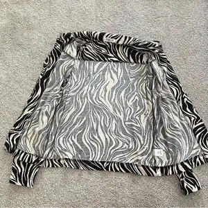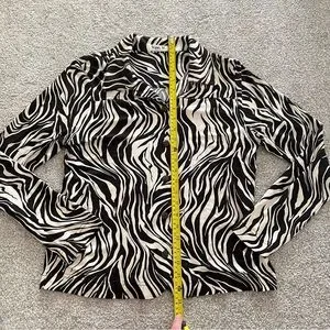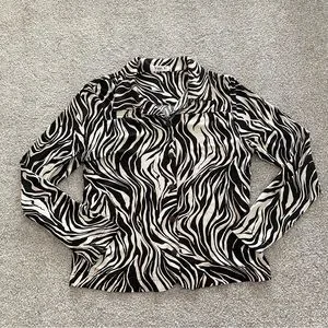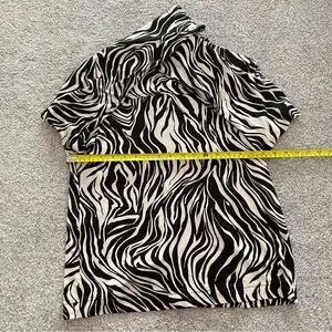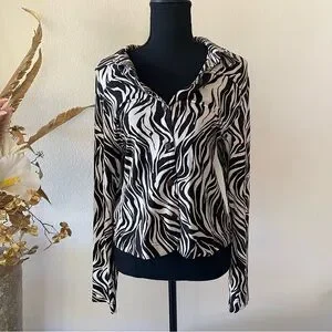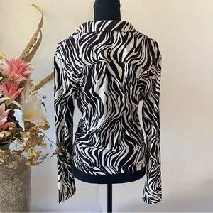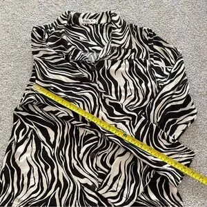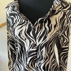 Vikki Vi Zebra Animal Print Collared Button Up Blouse Black & Cream Medium