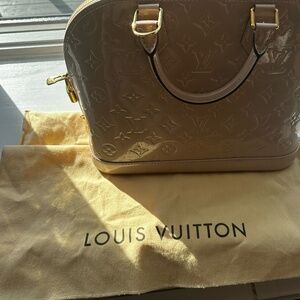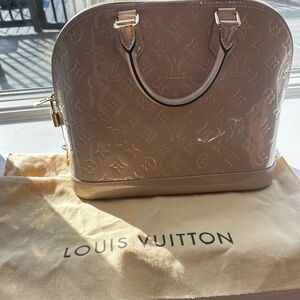 This is a stunning original Louis Vuitton Alma PM in Rose Ballerine (baby pink) that has only been used once. It’s a rare find, as it has been discontinued. With only two uses in its lifetime, this bag is in mint condition and ready for a new owner who appreciates its beauty and exclusivity. Don’t miss out on this extraordinary piece!