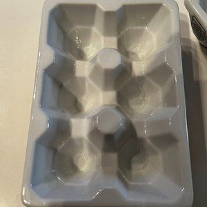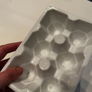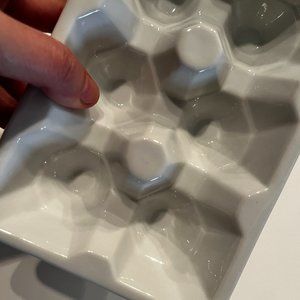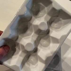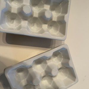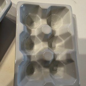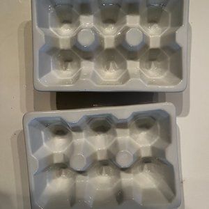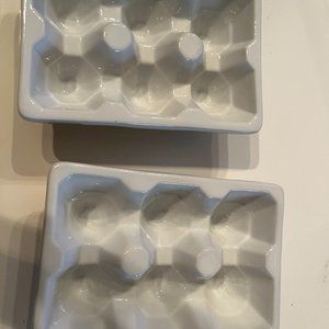 This is a listing for a set of 2 porcelain egg holders / trays. These look like egg cartons and are dishwasher safe.