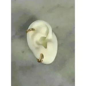 Gold Crystal Thick Small Huggie Hoop Earrings