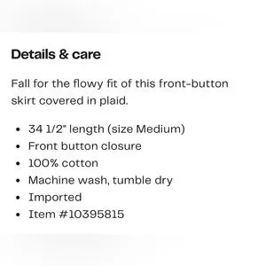 NWT Mother The Out Skirts Plaid Skirt with pockets fits probably closer to a Medium