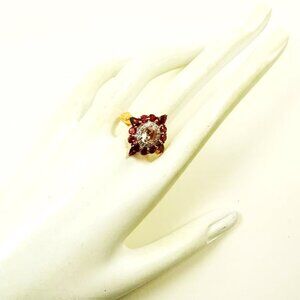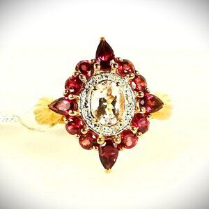 SAVVY CIE $328 Sterling Silver Rose Gold Plated Morganite & Garnet Ring Size 8
