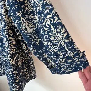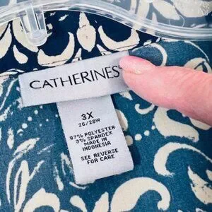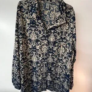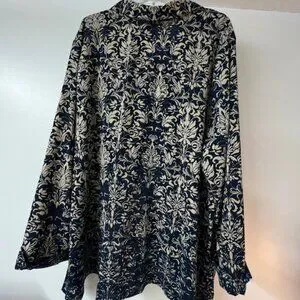 Catherines Womens Long Sleeve, Button-Down Tunic, Drk Blue/Tan Pattern, Size 3X