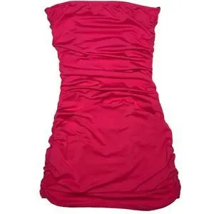 A charming and youthful fuchsia tube top dress with a flattering ruched design. There is plenty of stretch and it's super flattering! It's in excellent condition - no flaws.