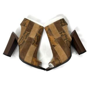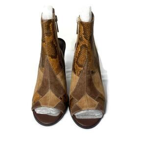 C. Wonder Open Toe Booties Brown Patchwork Leather Size 8 NEW