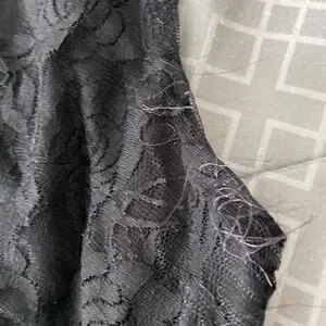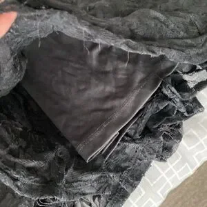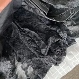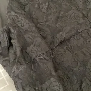 The outside is like a veil, sheer, rose-floral embroidered fabric and underneath it’s a solid layer