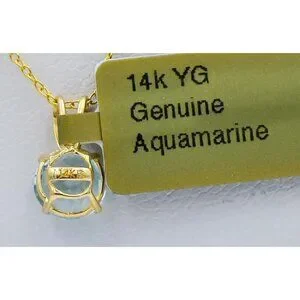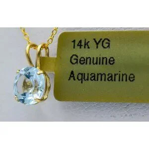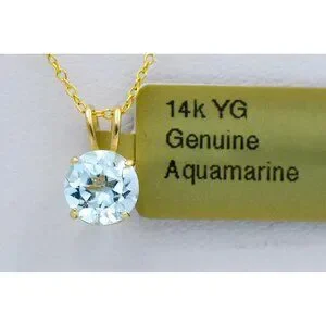 Genuine 1.07 Ct Aquamarine Pendant 14k Yellow Gold