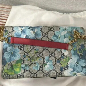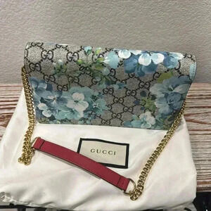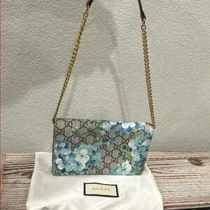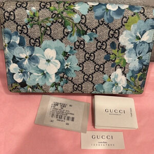 NWT Authentic Gucci Supreme Monogram Blooms Chain Wallet Blue
