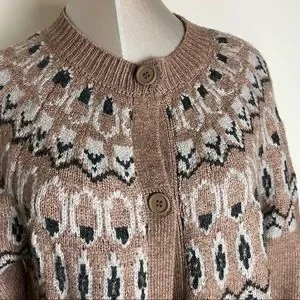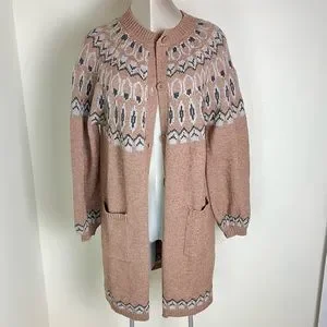New Max edition Fair Isle Intarsia knit long Cardigan sweater Size Large NEW
