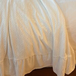 White, extremely stretchy and very flattering, white slip connected internally, stretchy smocked eyelet bandeau top portion. No stains, perfect condition, never worn