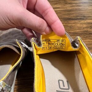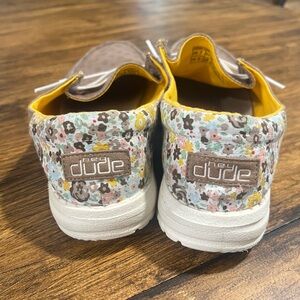 Women’s size 7 Hey Dude’s in Wendy funk & army dot print.