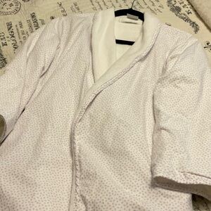Luxurious Yves Delorme super soft cotton with terry lining luxury brand bathrobe. Side pockets. Belt attached. Size M. Step out of the bath and into this gorgeous robe. Made in France.