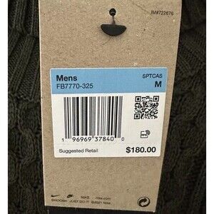 Nike Mens Cable Knit Turtleneck Sweater Wool Blend Green FB7770-325 Sz Medium