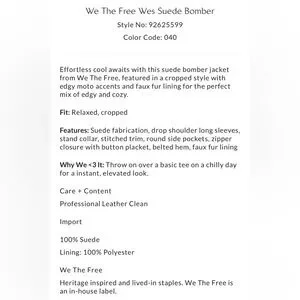 Free People We The Free Wes Suede Bomber Jacket NWT