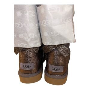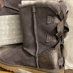 NEW! UGG Bailey Bow Glitz Real Shearling Mid-Calf Boots Gray Sheepskin Sz 10