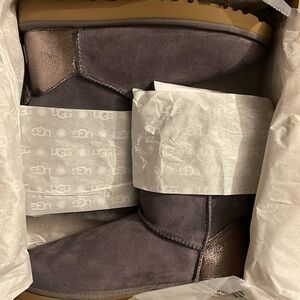 NEW IN BOX! UGG Bailey Bow Glitz Real Shearling Mid-Calf Boots Gray Twinface Sheepskin Sz 10